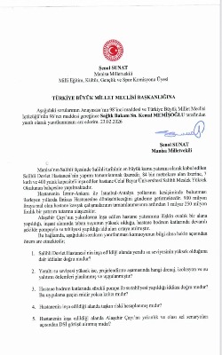 Sunat, söz konusu iddiaların açıklığa kavuşturulması amacıyla Sağlık Bakanı Kemal Memişoğlu’nun yazılı olarak yanıtlaması istemiyle soru önergesi verdi.
