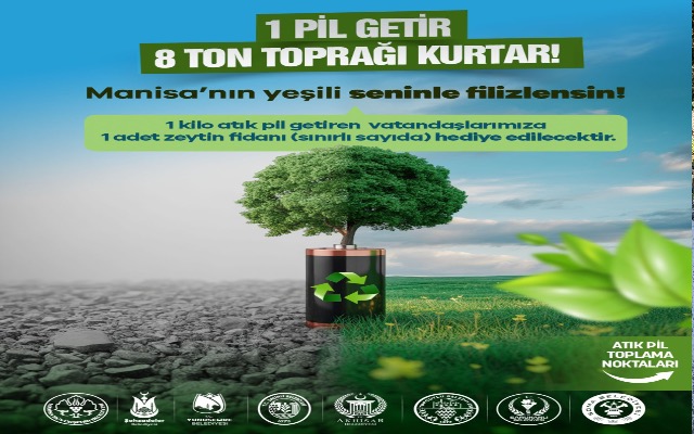 Kampanya kapsamında 1 kilogram atık pil teslim eden doğaseverlere, sınırlı sayıdaki zeytin fidanlarından 1 adet hediye edilecek. Bu sayede Manisa’nın daha temiz, daha sağlıklı ve daha yeşil bir geleceğe taşınması hedefleniyor.